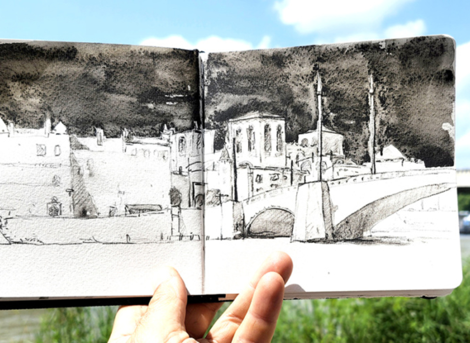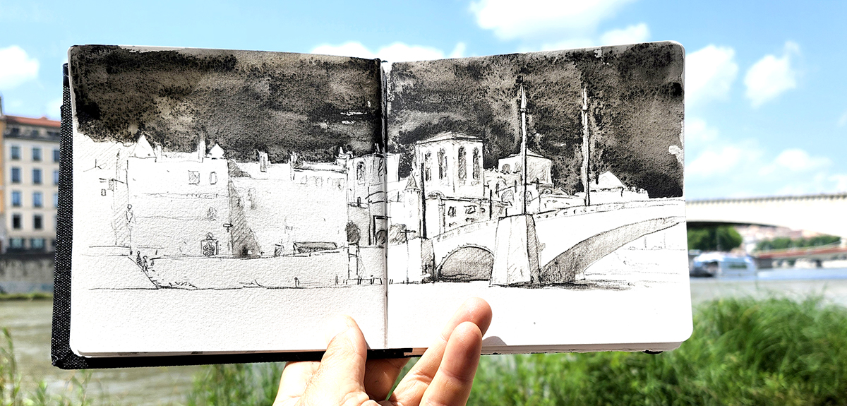 Programme : Croquis, couleur, perspective, compositions … nous ferons le tour de nombreux concepts et de plusieurs techniques qui rendent un carnet vivant et agréable à regarder.