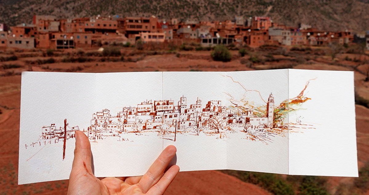 Creusée et façonnée par la rivière Ourika, la vallée est encore relativement préservée tant par sa nature que par son mode de vie traditionnel. , et c’est au sein d’un petit village de montagne que nous partagerons ensemble et dans la convivialité l’esprit du Carnet de Voyage, le plaisir de croquer ensemble et de découvrir une culture, un pays, ses habitants.